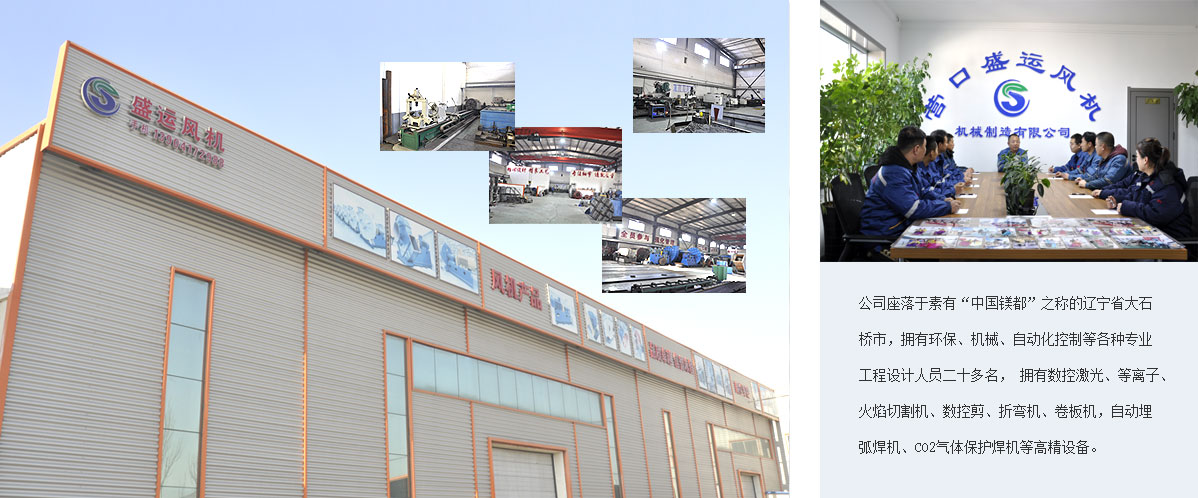 營口盛運風(fēng)機機械制造有限公司是一家從事各類風(fēng)機機械、除塵系統(tǒng)的研發(fā)、設(shè)計、制造為主的專業(yè)生產(chǎn)企業(yè)。公司座落于素有“中國鎂都”之稱的遼寧省大石橋市,